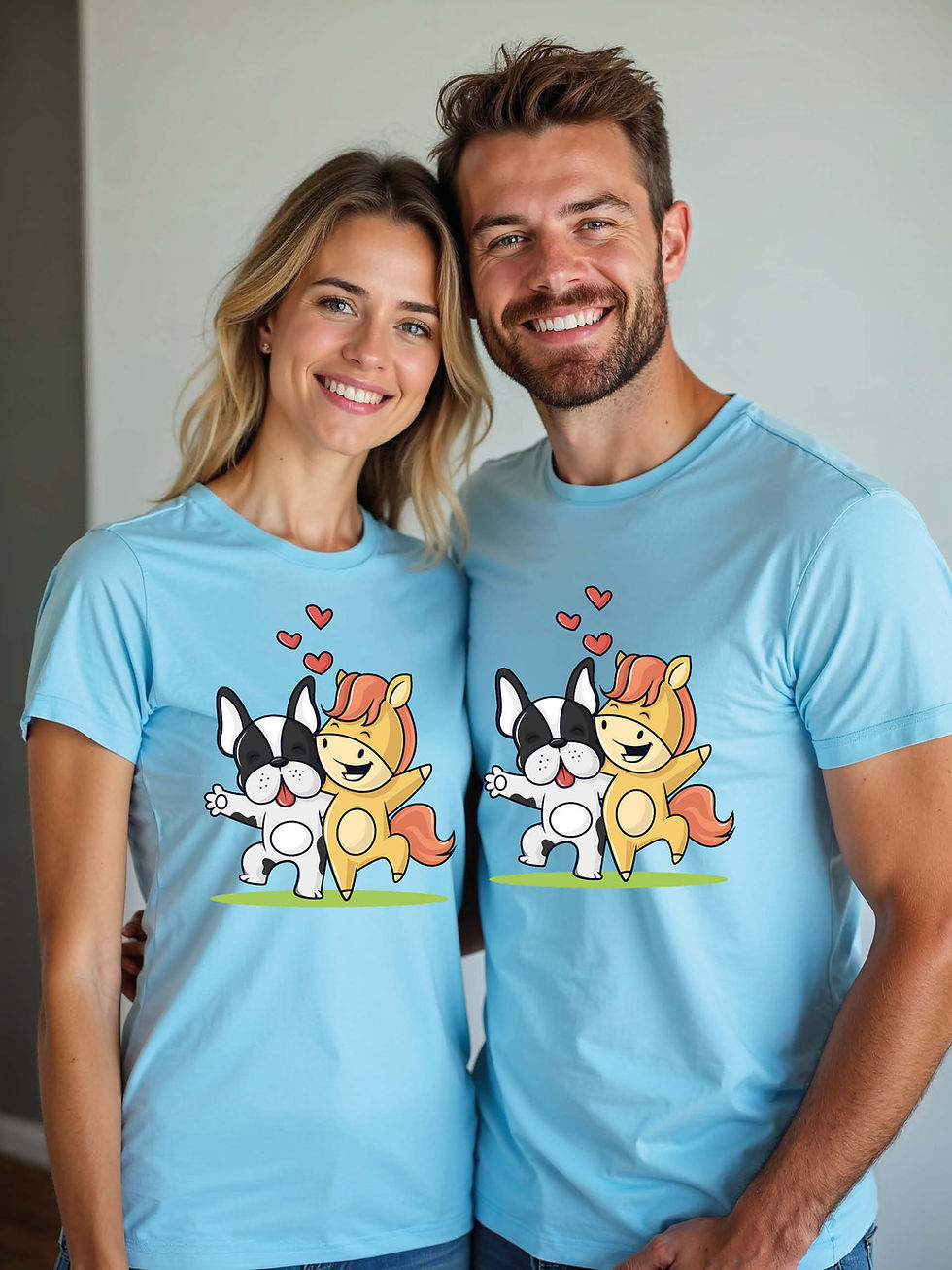 Cute Illustration Couple T-Shirts - Romantic Printed Matching Set | Shop Now