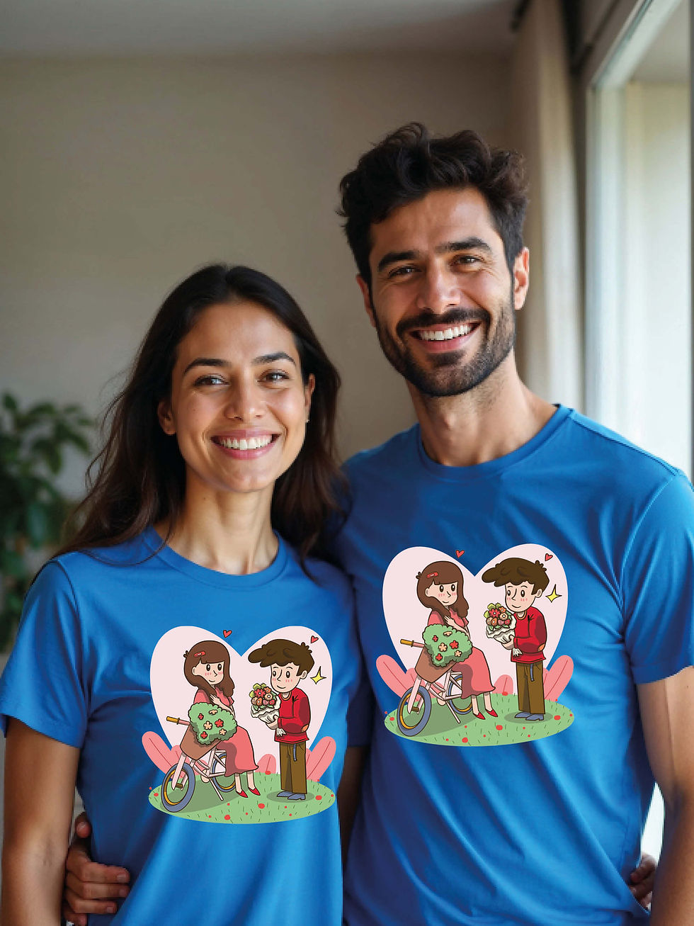 Stylish Illustration Couple T-Shirts - Trendy Matching Outfit | Best Price