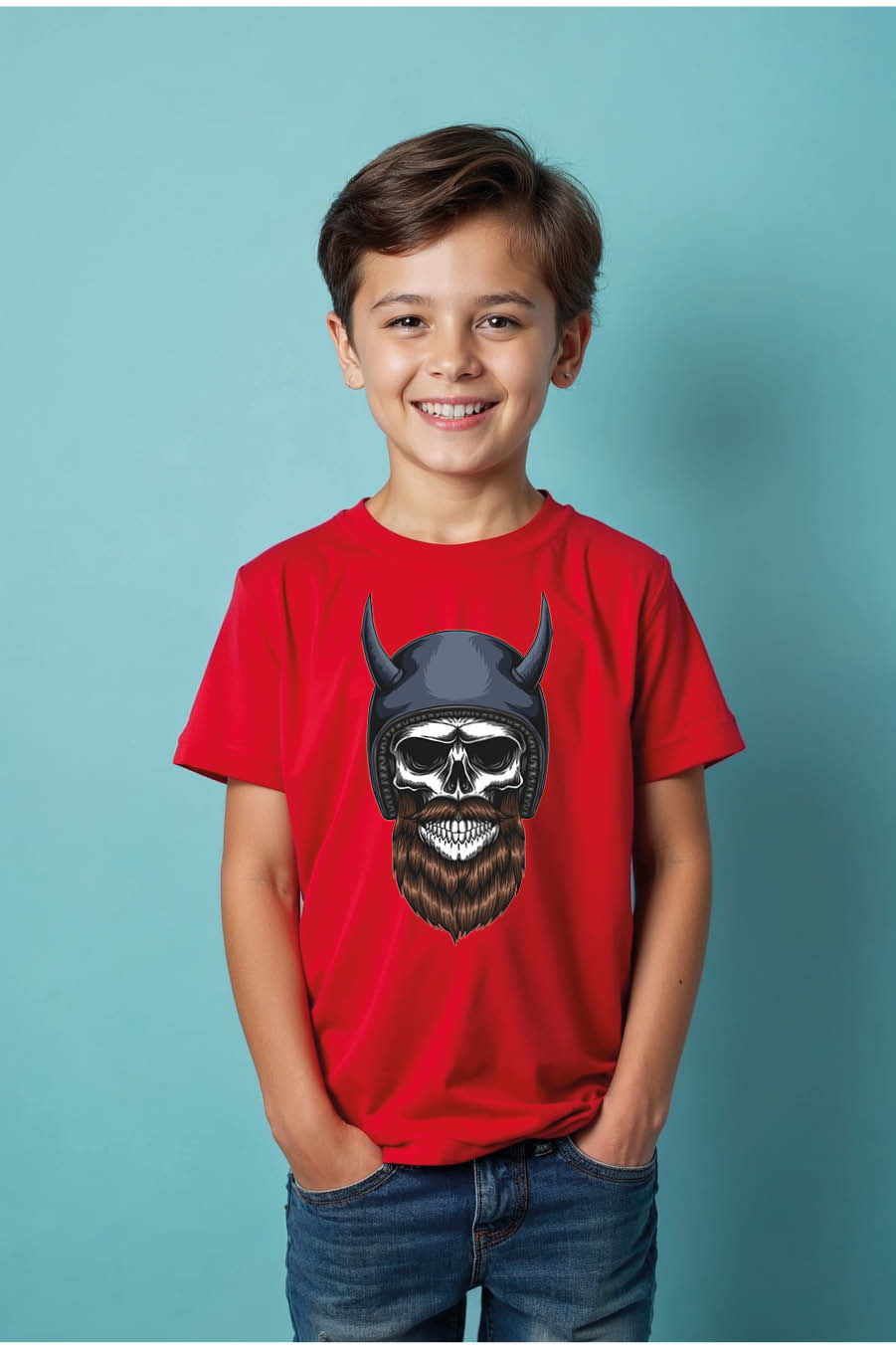 Biker Skull T-Shirt with Full Beard, Horned Helmet, and Goggles Everyday Kids