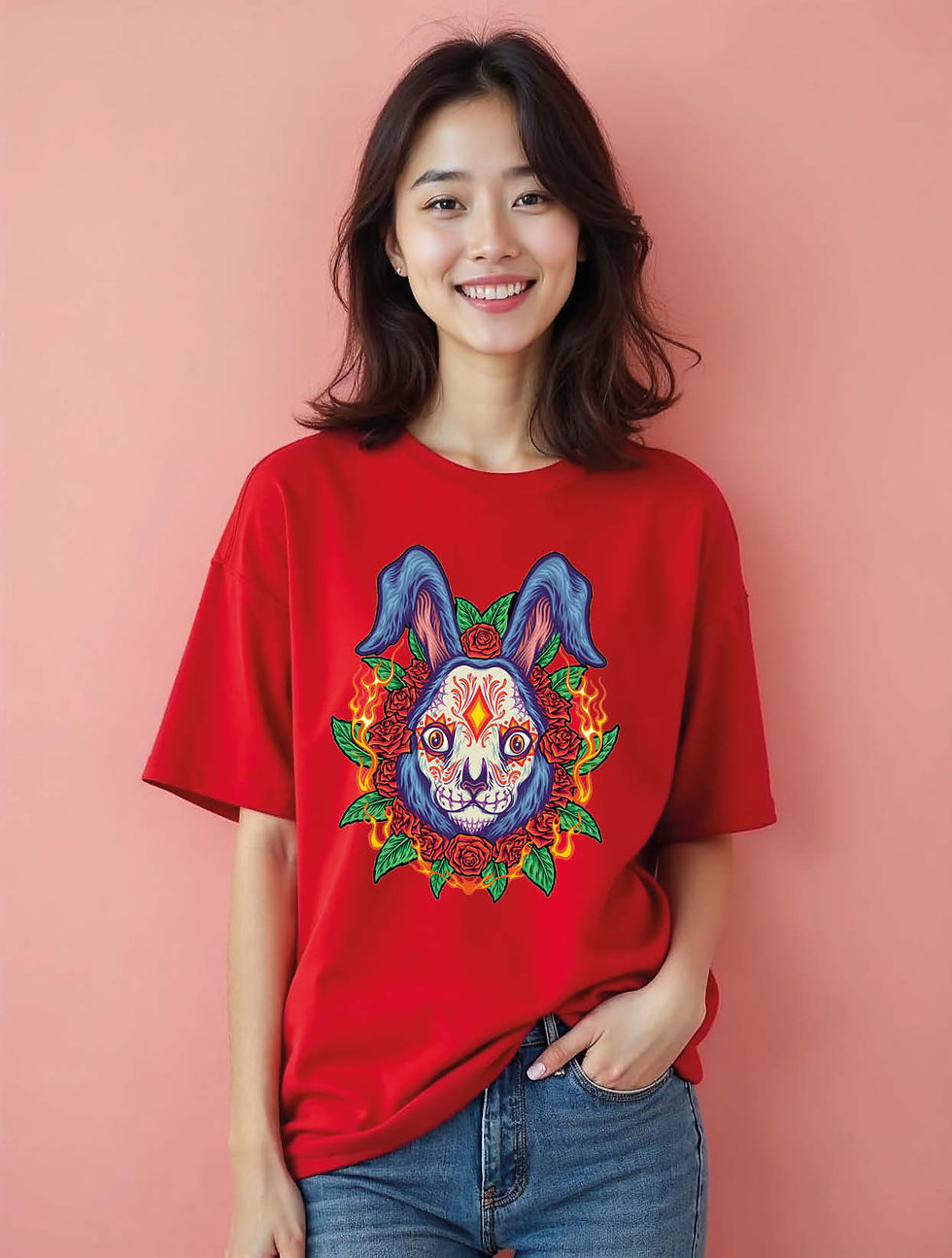 Sugar Skull Rabbit Unisex Drop Shoulder Oversized T-Shirt for Men & Women