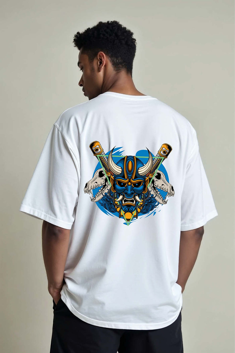 Oni Samurai Skull Urban Streetwear Unisex Drop Shoulder Oversized T-Shirt