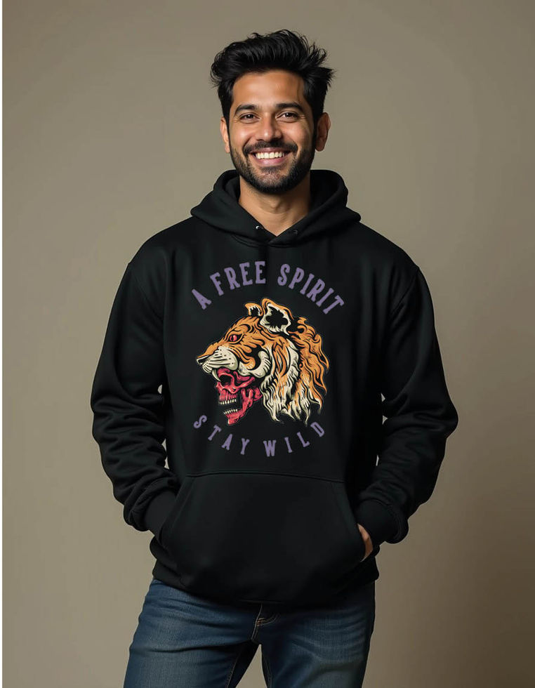 a free spirit stay wild Trendy Oversized Streetwear Men’s Printed Hoodie
