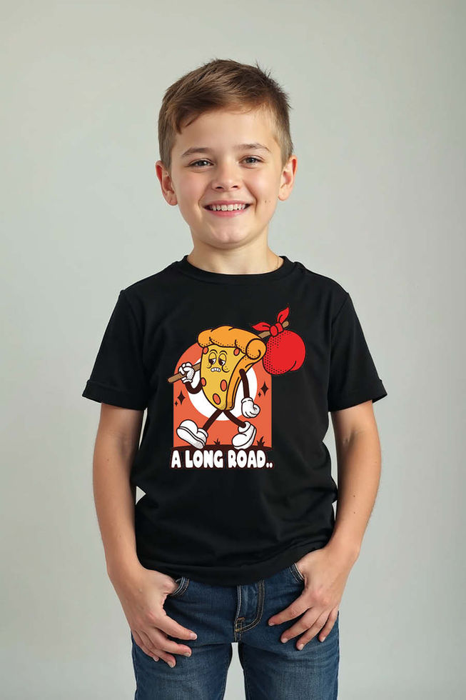 A Long Road Trendy Cute Kids Typography T-Shirt – Graphic Print Design for Boys