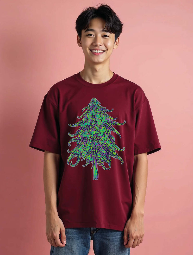 Abstract Cannabis Plant Casual Unisex Drop Shoulder Oversized T-Shirt