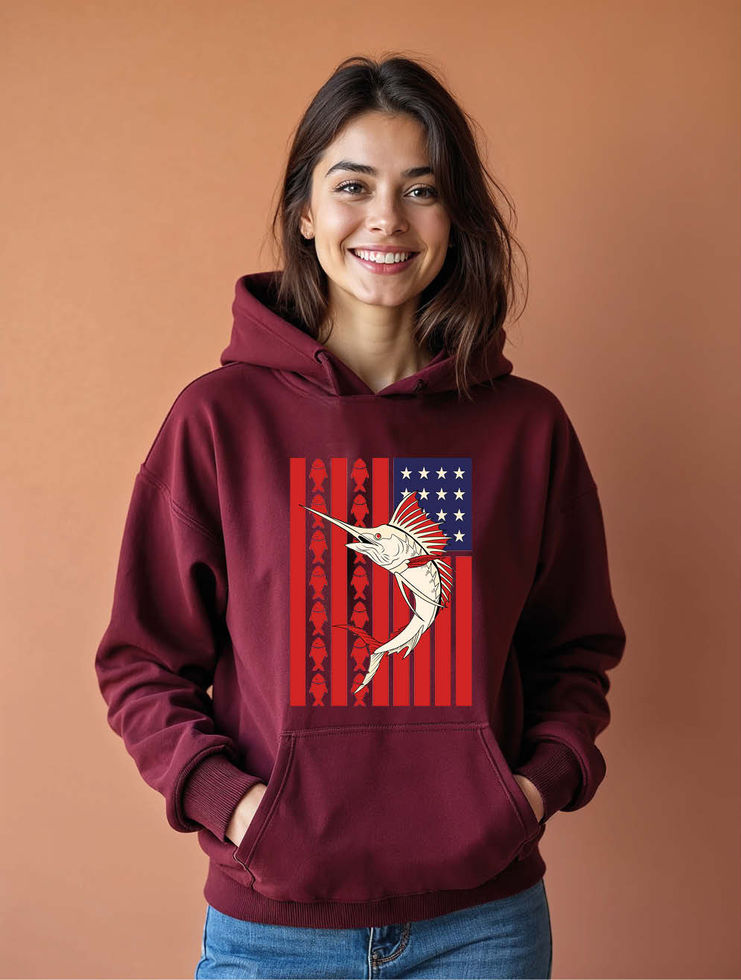 American Flag Fishing Woman's Printed Graphic Stylish Hoodies