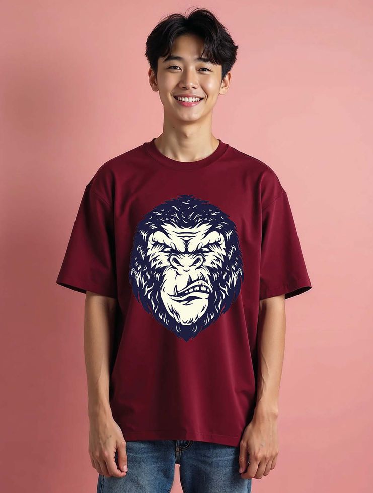 Angry Gorilla Face Cool Unisex Oversized Drop Shoulder T-Shirt for Men & Women