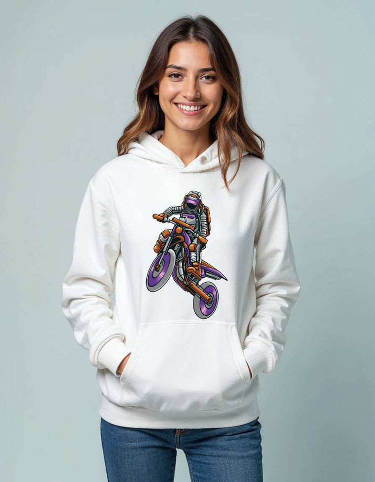 astronaut and space motor bike Streetwear Unisex Printed Graphic Hoodies