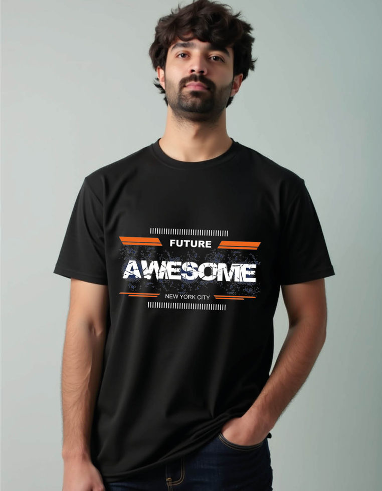 awesome Round Neck Graphic Tee for All Ages – Trendy Print Design