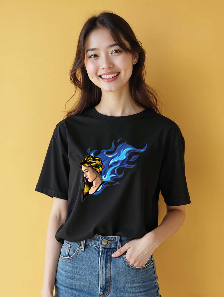 Azure Flame Chic Women’s Printed Graphic Streetwear T-Shirt – Premium Quality
