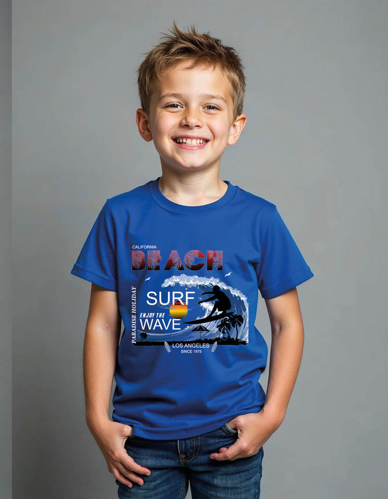 Back Surf Wave Round Neck Graphic Tee for Boys, Girls, Men & Women