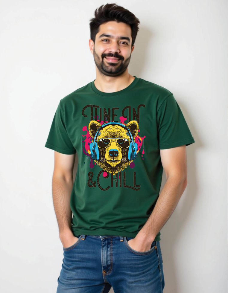 bear listening music headphones mens printed graphic t shirt