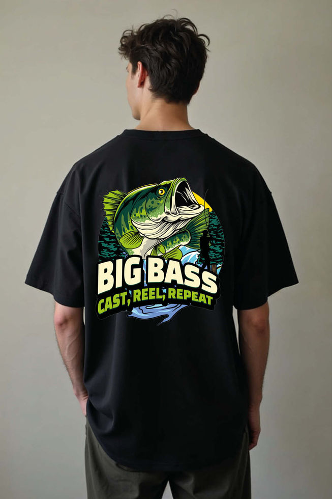 big bass cast reel repeat Unisex Oversized Drop Shoulder T-Shirt for Men & Women