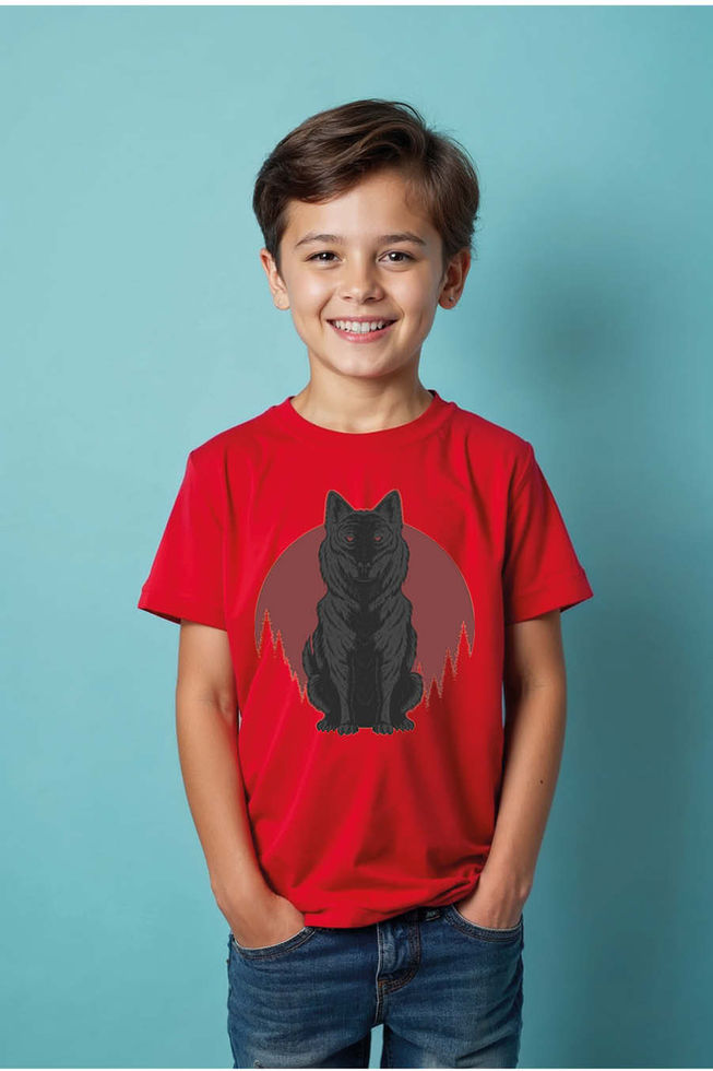 Black Wolf with Red Eyes T-Shirt with Bloody Sunset Background Buy Now