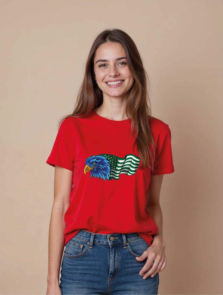 Blue Eagle Head with Distressed Green American Flag Stylish Women’s T-Shirt