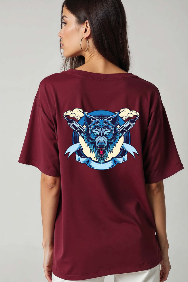 Blue Wolf Piston Aesthetic Unisex Oversized Drop Shoulder Tees For Men & Women