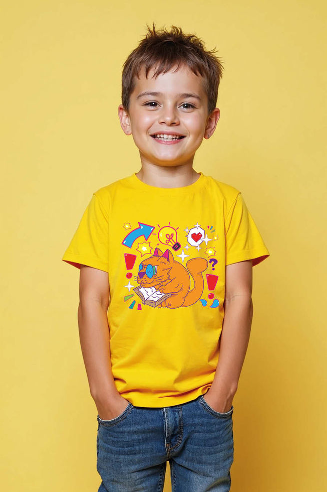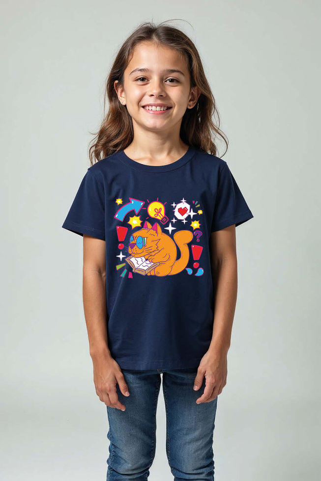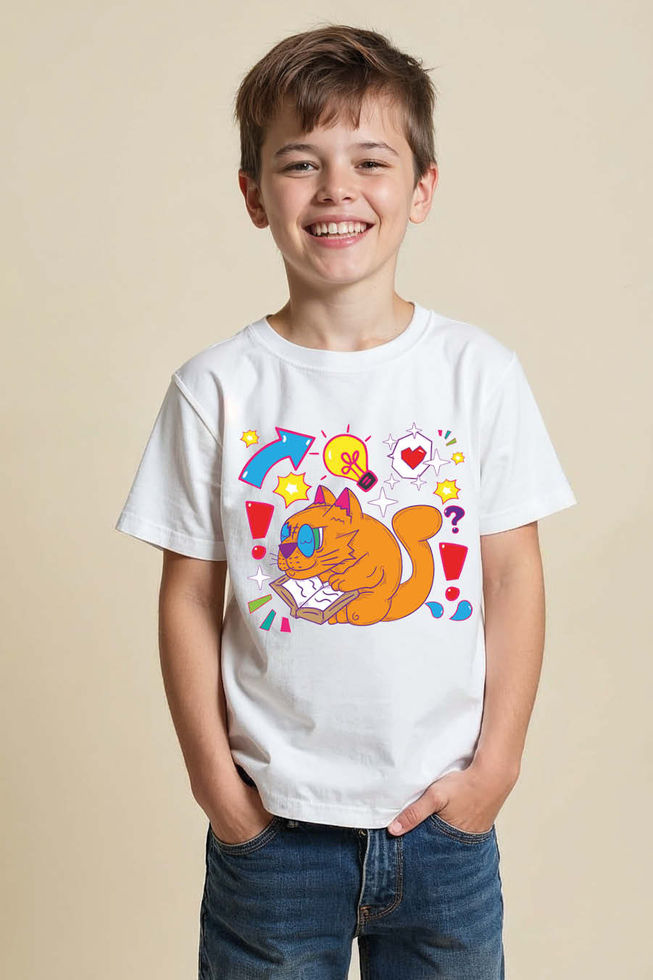 Bookworm Cat Maroon Graphic T-Shirt Cool Unisex Kids Graphic Tee – Design Print