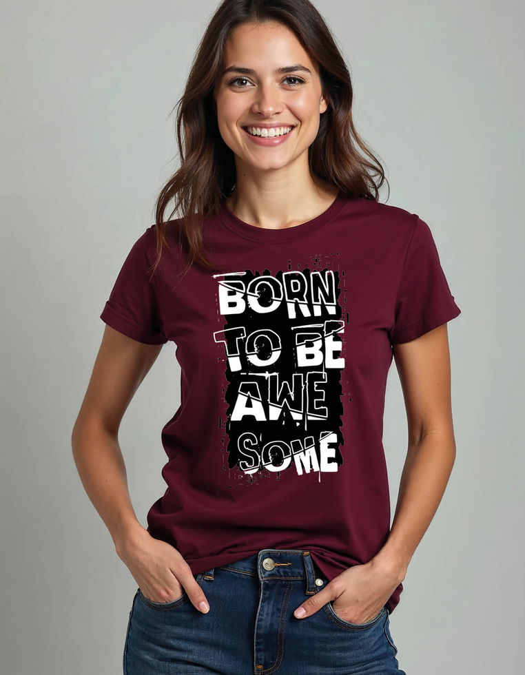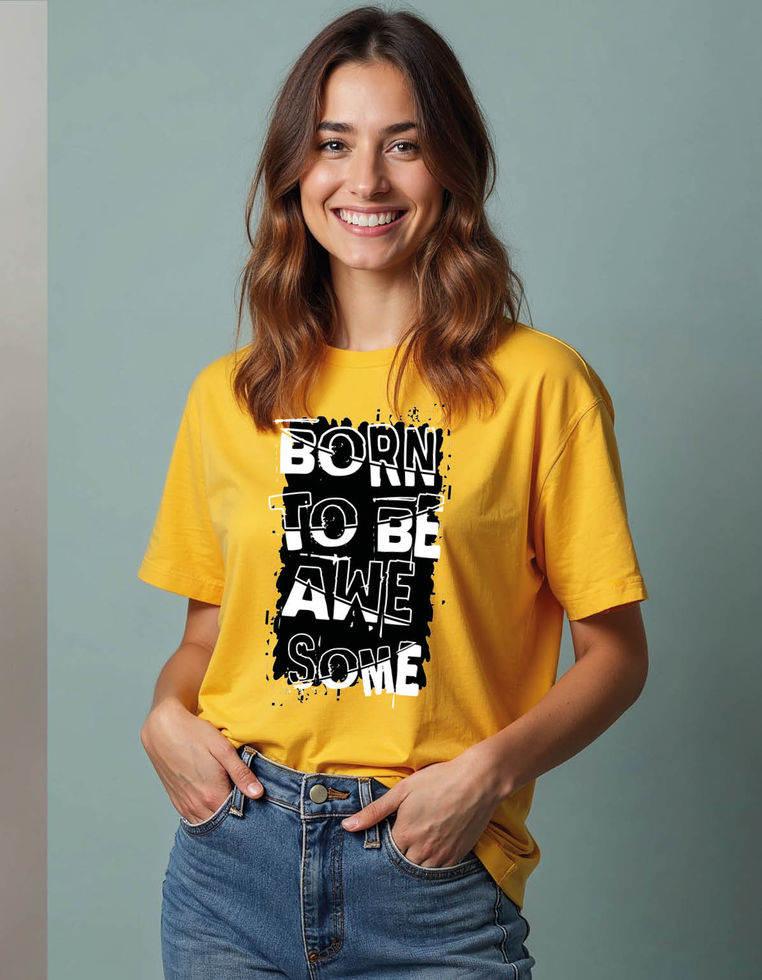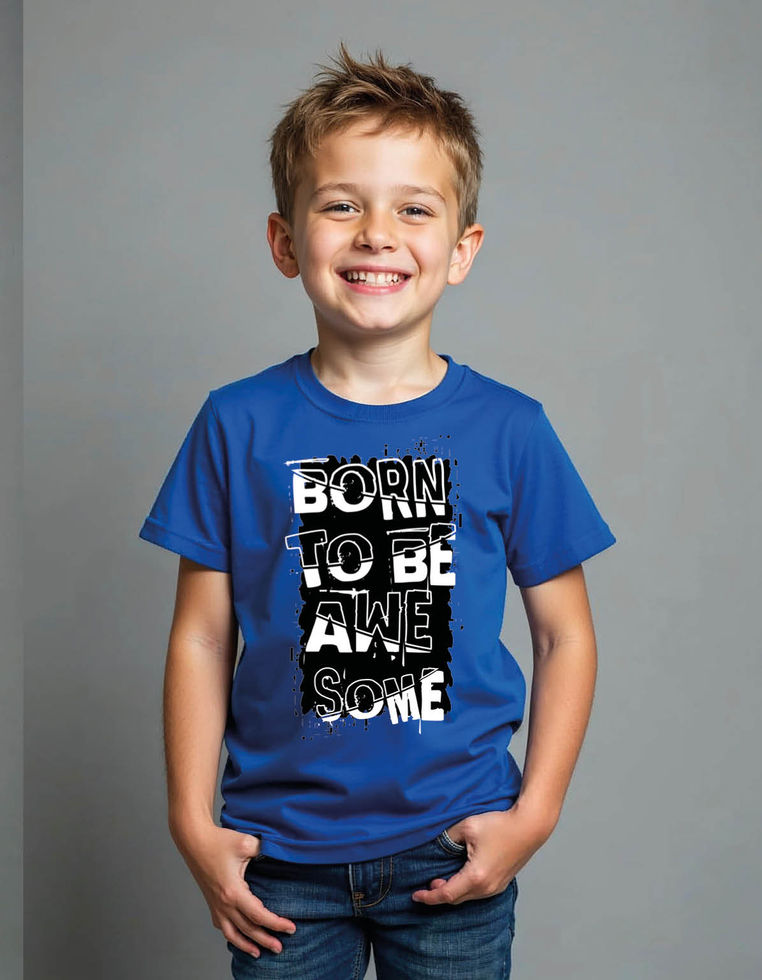 Born To Be Awesome Round Neck Graphic Tee for All Ages