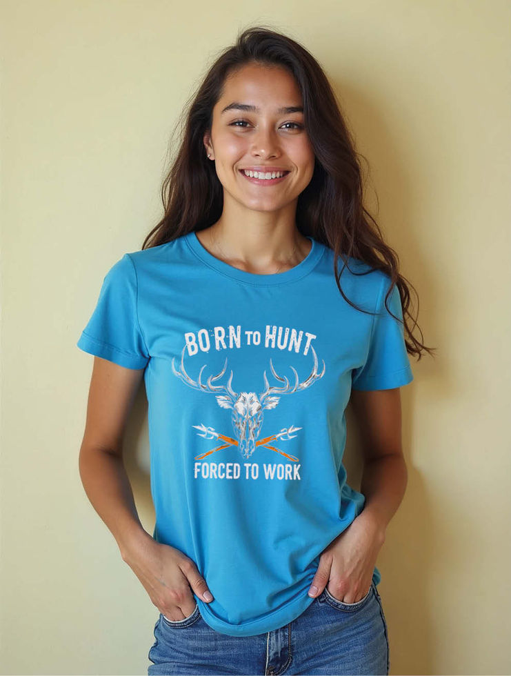 born to hunt forced to work Urban Women’s Printed Graphic Streetwear T-Shirt