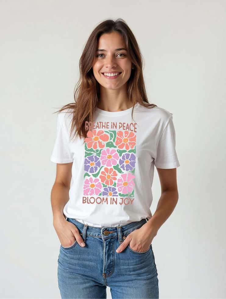 breath in peace bloom in joy Chic Women’s Printed Graphic Streetwear T-Shirt