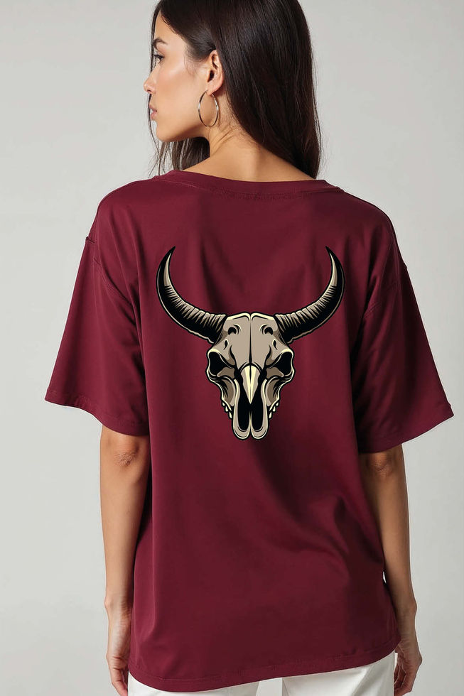 Bull Skull Cool Unisex Oversized Drop Shoulder T-Shirt for Men & Women