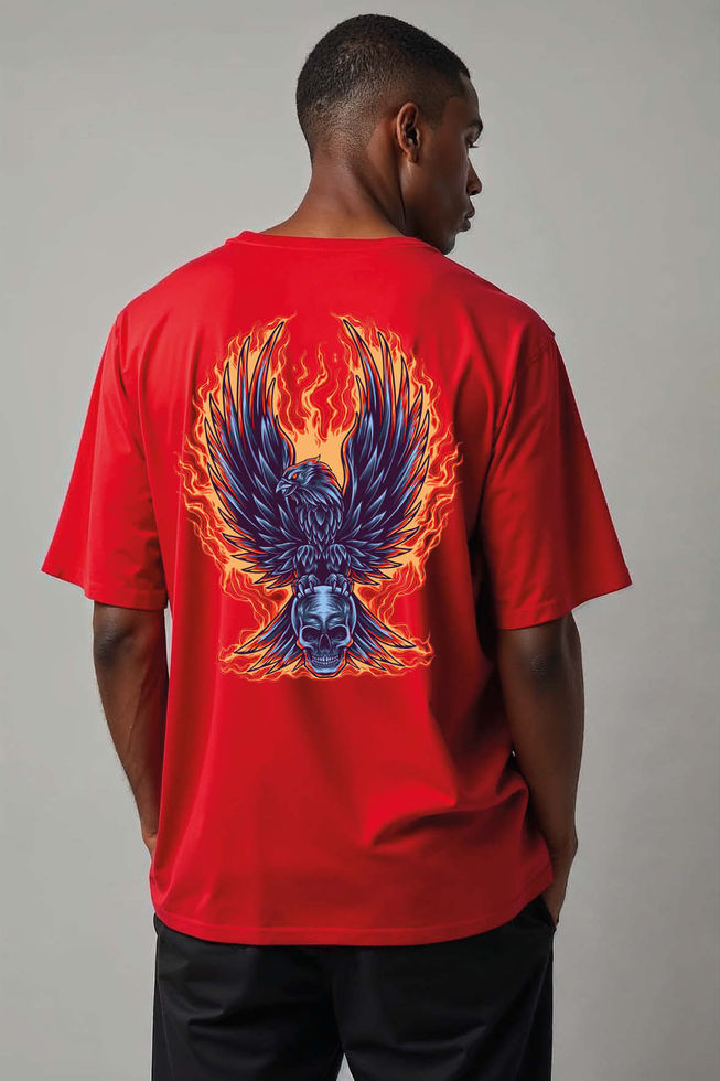 Burning Phoenix Rising from Skull Cool Unisex Oversized Drop Shoulder T-Shirt