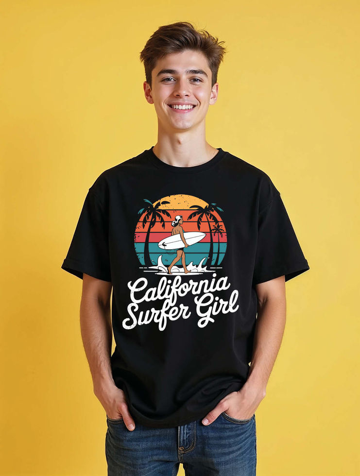 california surfer girl Casual Cotton Unisex Drop Shoulder Oversized T-Shirt