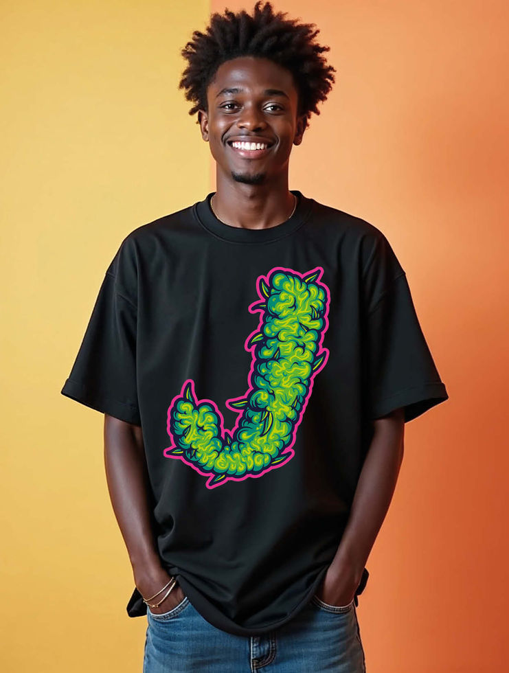cannabis buds Symbol "j" Classic Streetwear Unisex Drop Shoulder Oversized Tees