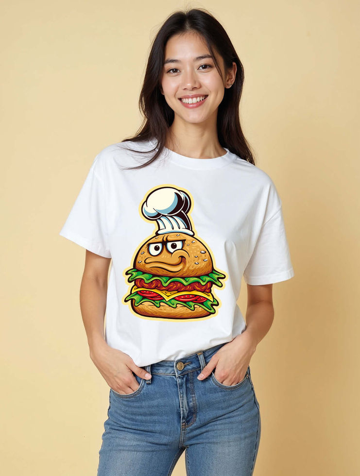Chef Hat Hamburger Mascot Casual Unisex Drop Shoulder Oversized T-Shirt