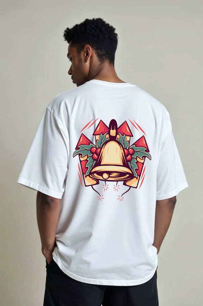 Christmas Bell Rockets Trendy Streetwear Unisex Drop Shoulder Oversized T-Shirt