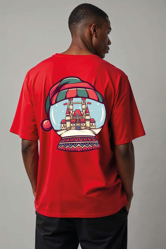 Christmas Castle Snow Globe Stylish Classic Unisex Oversized Drop Shoulder Tees