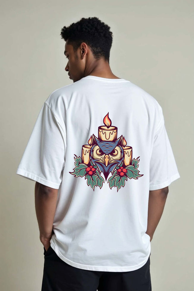Christmas Owl Candle Aesthetic Unisex Oversized Drop Shoulder T-Shirt