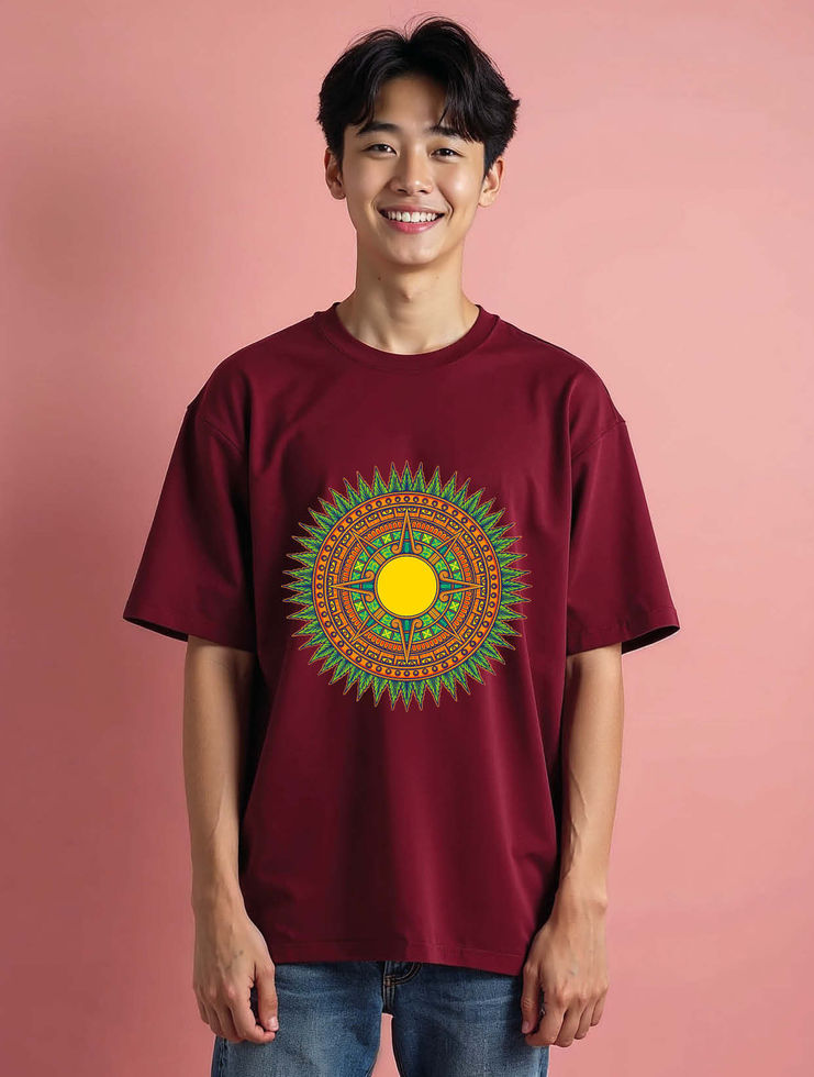 Colorful Sun Mandala Classic Unisex Drop Shoulder Oversized T-Shirt