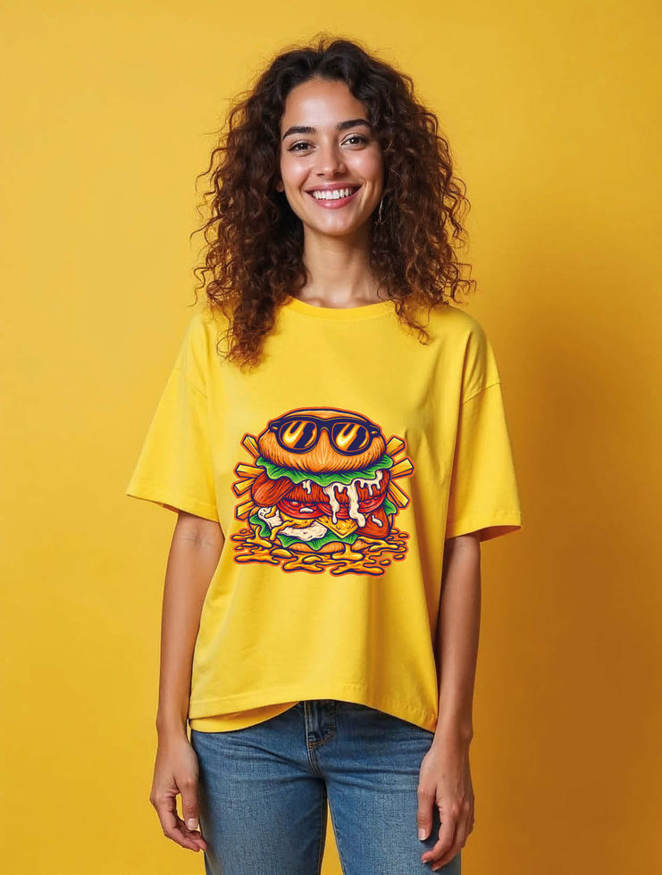 Cool Hamburger with Sunglasses Trendy Anime Unisex Drop Shoulder Oversized Tees