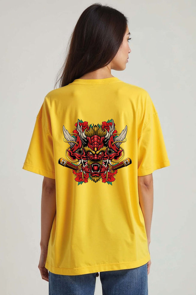 Crimson Oni Fury Samurai Trendy Oversized Drop Shoulder T-Shirt