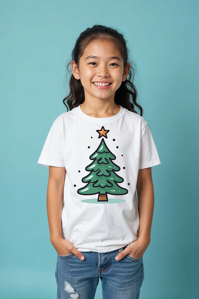 Cute Cartoon Christmas Tree with Star T-Shirt Trendy Cool Kids T-Shirt