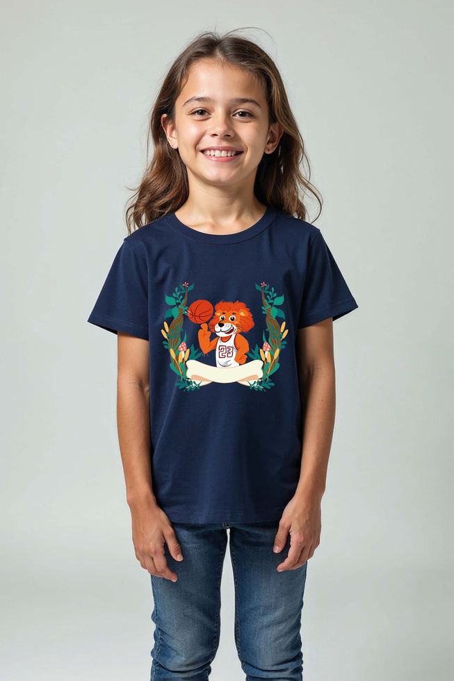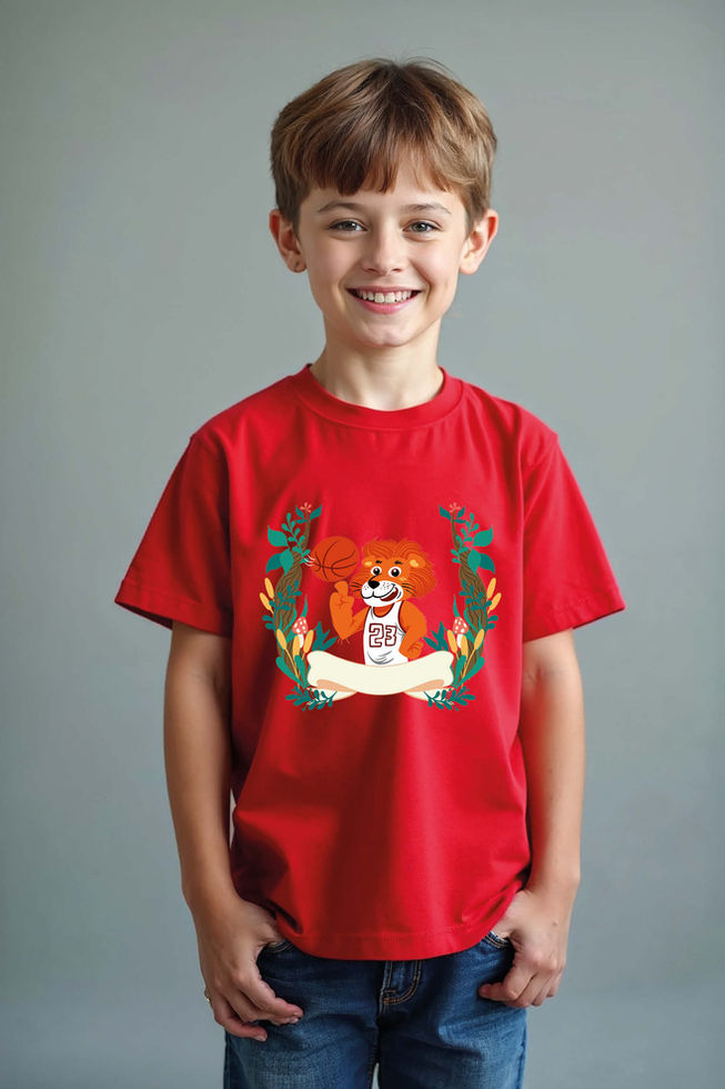 Cute Red Lion Basketball Jersey Number T-Shirt Soft Unisex Kids Graphic Tee