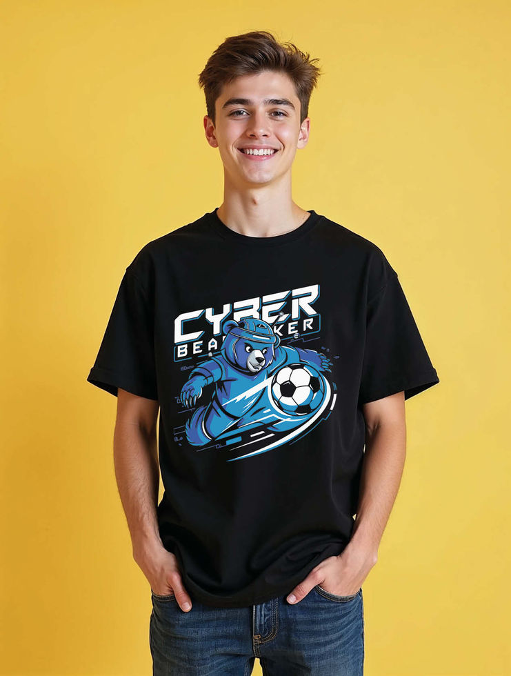 Cyber Bear Soccer Player Aesthetic Unisex Oversized Drop Shoulder T-Shirt