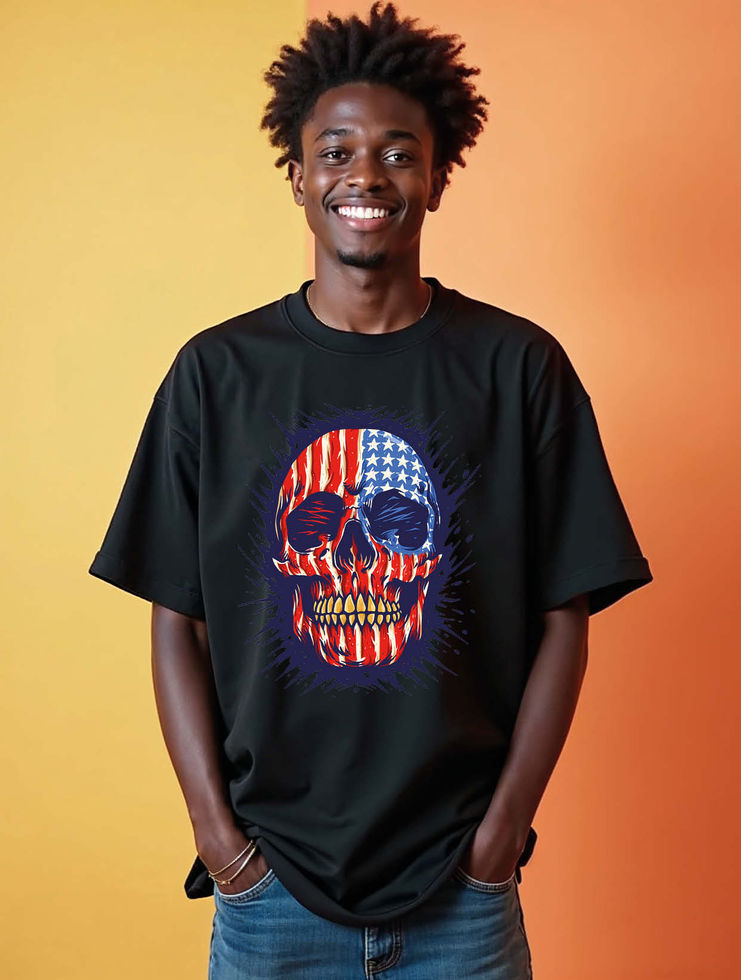 Distressed American Flag Skull Stylish Unisex Drop Shoulder Oversized T-Shirt