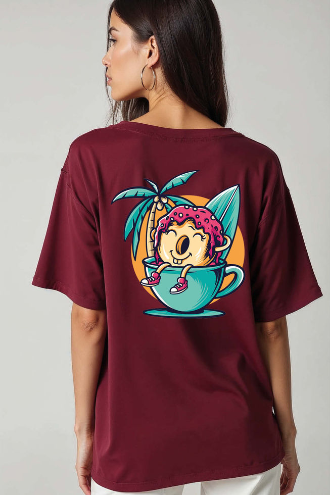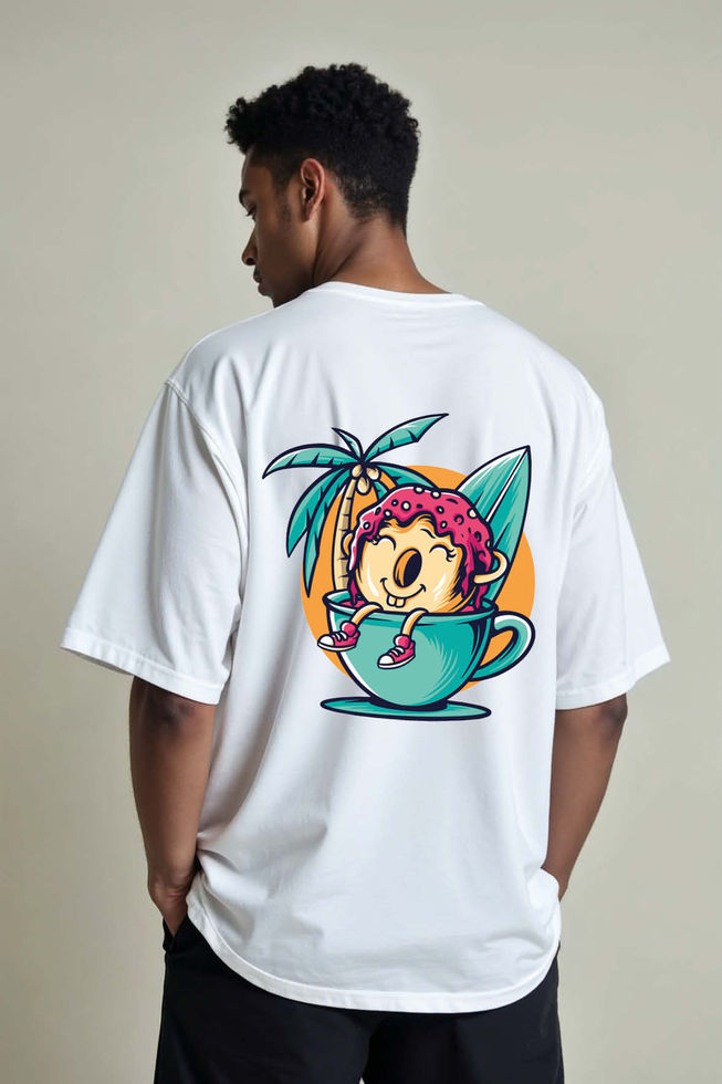 Donut Surf Cup Unisex Drop Shoulder Oversized T-Shirt For Men & Women
