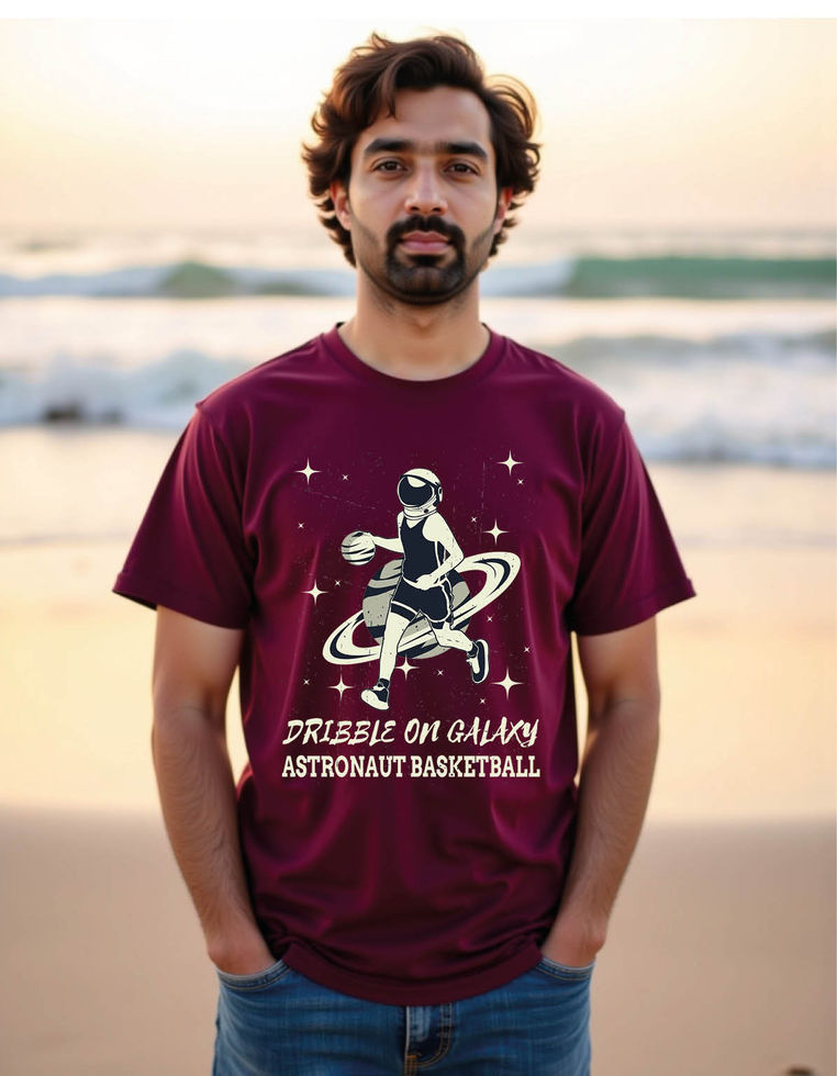 dribble on galaxy astronaut basketball mens printed graphic t shirt