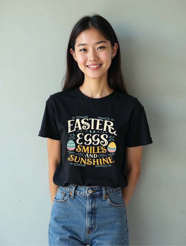 easter eggs smiles and sunshine Casual Women’s Printed Graphic Streetwear Tees