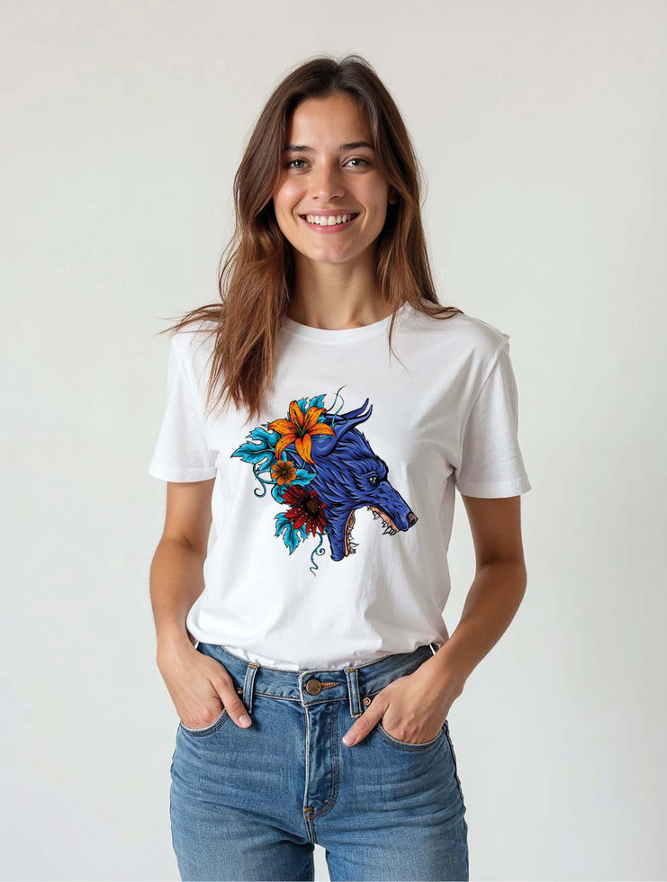 Electric Wolf Bloom Tee Chic Women’s Printed Graphic Streetwear T-Shirt