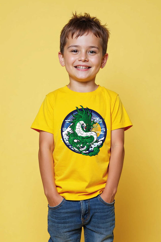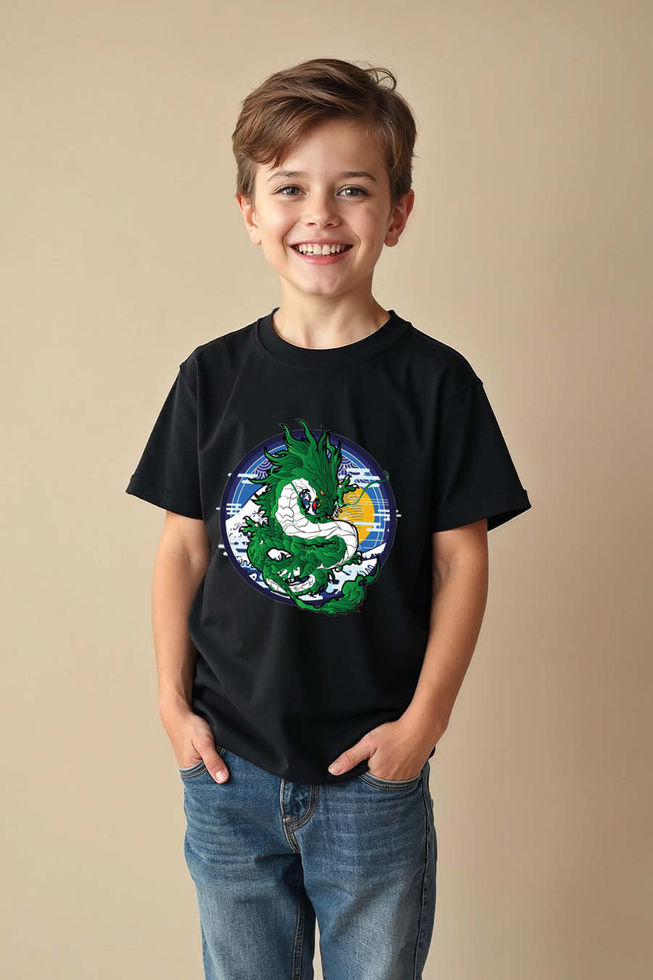 Emerald Dragon Sun and Waves Casual Cartoon Printed T-Shirt for Boys & Girls