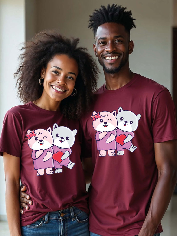 Try the premium quality pre-shrunk Couple T shirts.