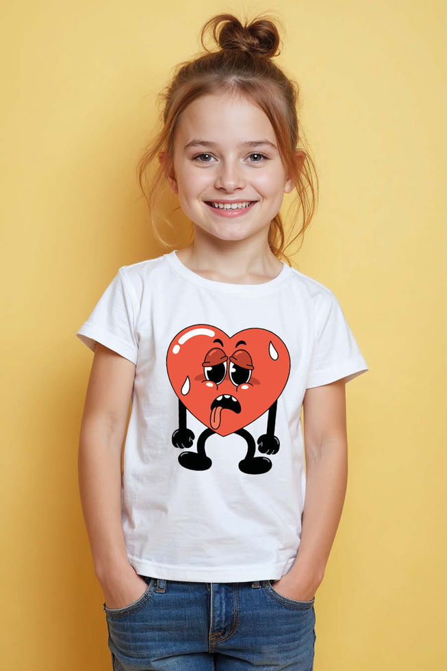 Exhausted Cartoon Heart T-Shirt Cute Kids Typography T-Shirt
