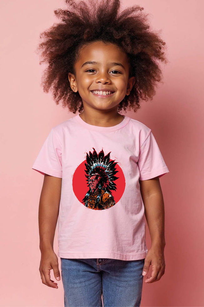 Feather Headdress Chief Kids Graphic T-Shirt Trendy Typography Print T-Shirt