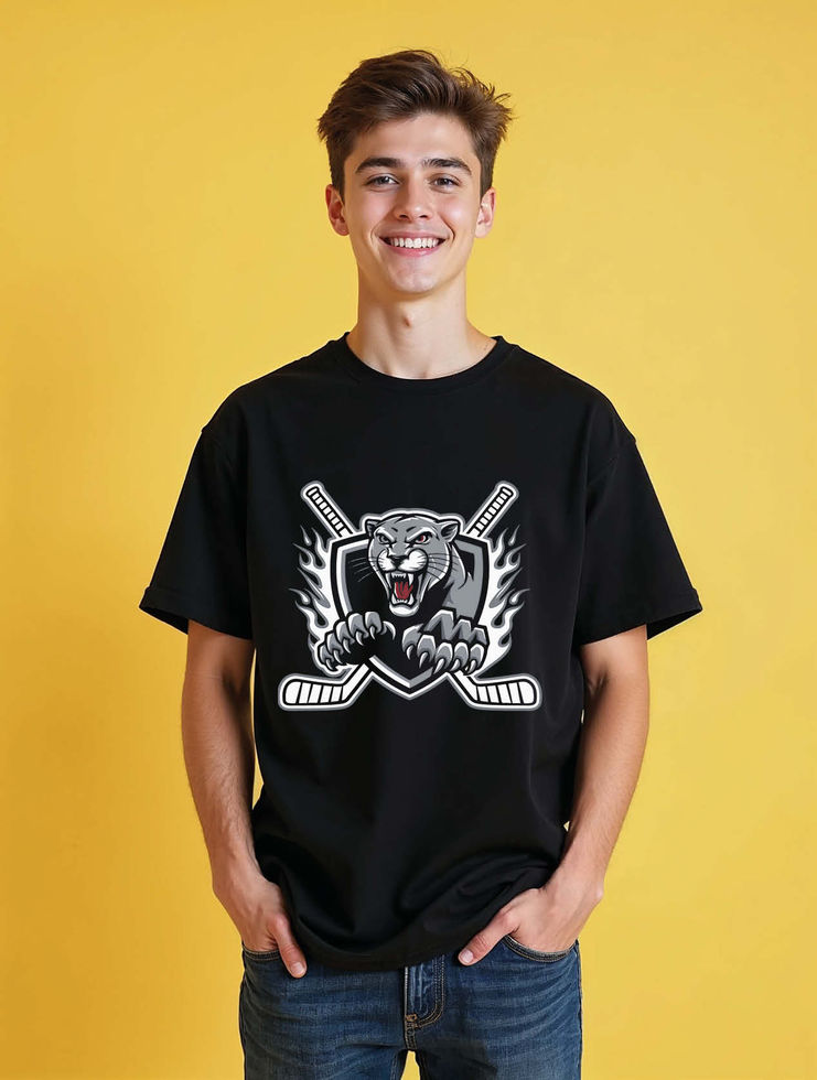Fierce Panther Mascot Hockey Premium Unisex Oversized Drop Shoulder T-Shirt
