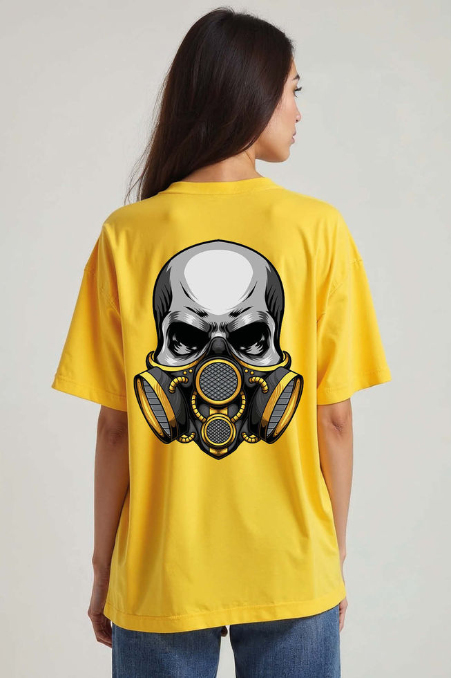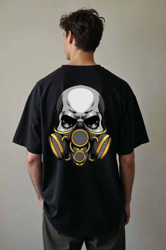 Filter Respirator Skull Streetwear Unisex Drop Shoulder Oversized T-Shirt
