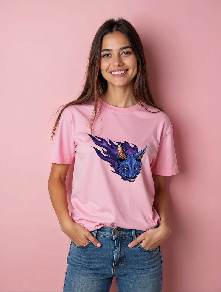 Flaming Blue Canine Head Classic Women’s Printed Graphic Streetwear T-Shirt