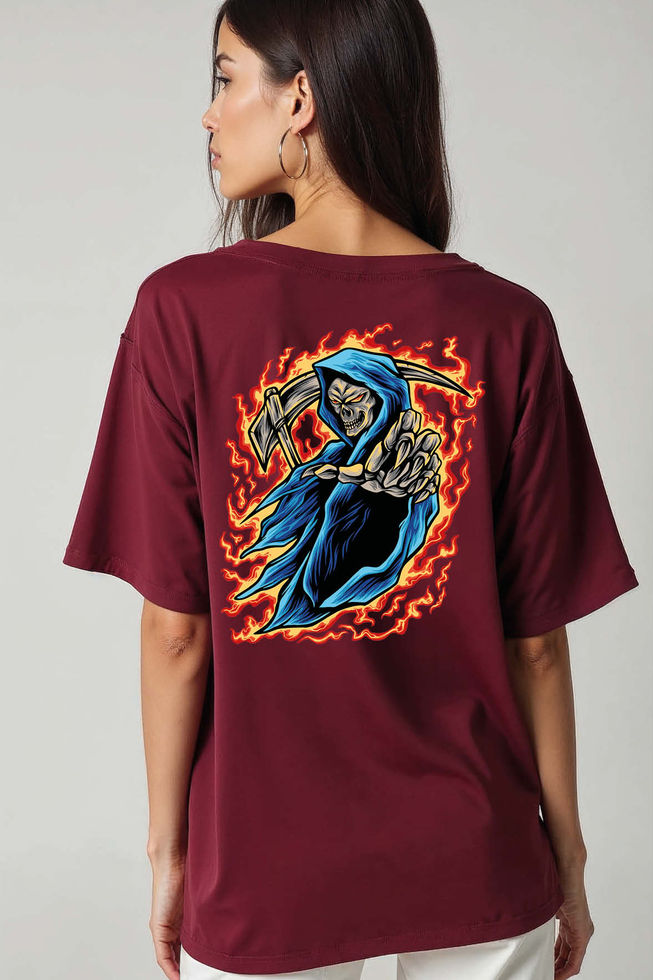 Flaming Grim Reaper Aesthetic Unisex Oversized Drop Shoulder T-Shirt